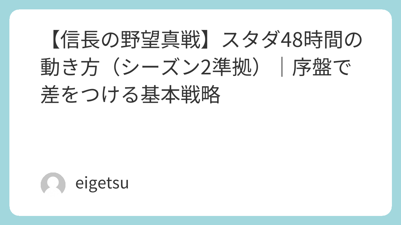 信長の野望真戦では、シーズン開始から48時間、いわゆる「スタダ(スタートダッシュ)」期間があります。