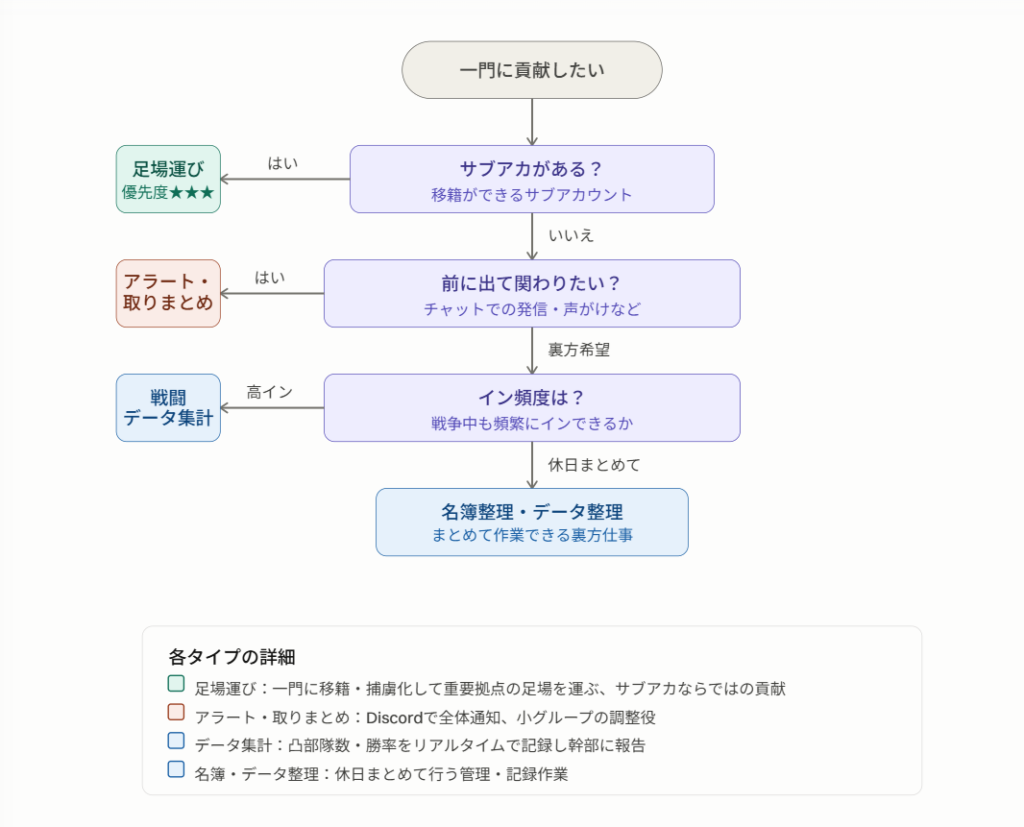 「幹部はちょっと…」と思っていても、自分のプレイスタイルに合った形で一門に貢献できる方法はあります。本記事では、サブアカの有無・関わり方・イン頻度によって、あなたに合った一門サポートの形を整理します。